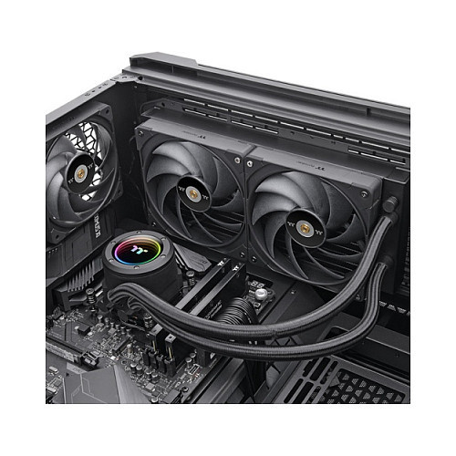 "Thermaltake CL-W419-PL00BL-A. Type: All-in-one liquid cooler, Fan diameter: 14 cm, Bearing type: Hydraulic. Product colour: Black"\n"TOUGHLIQUID 280 EX Pro introduces a new all-black industrial cap with an infinity mirror light design, adding a fresh look to the TOUGHLIQUID series. The AIO is equipped with two high-performance TOUGHFAN EX14 Pro fans, the TOUGHLIQUID 280 EX Pro provides a better PC building experience with the new MagForce 2.0, allowing you to snap the fans together more quickly and ensures a steadier connection!