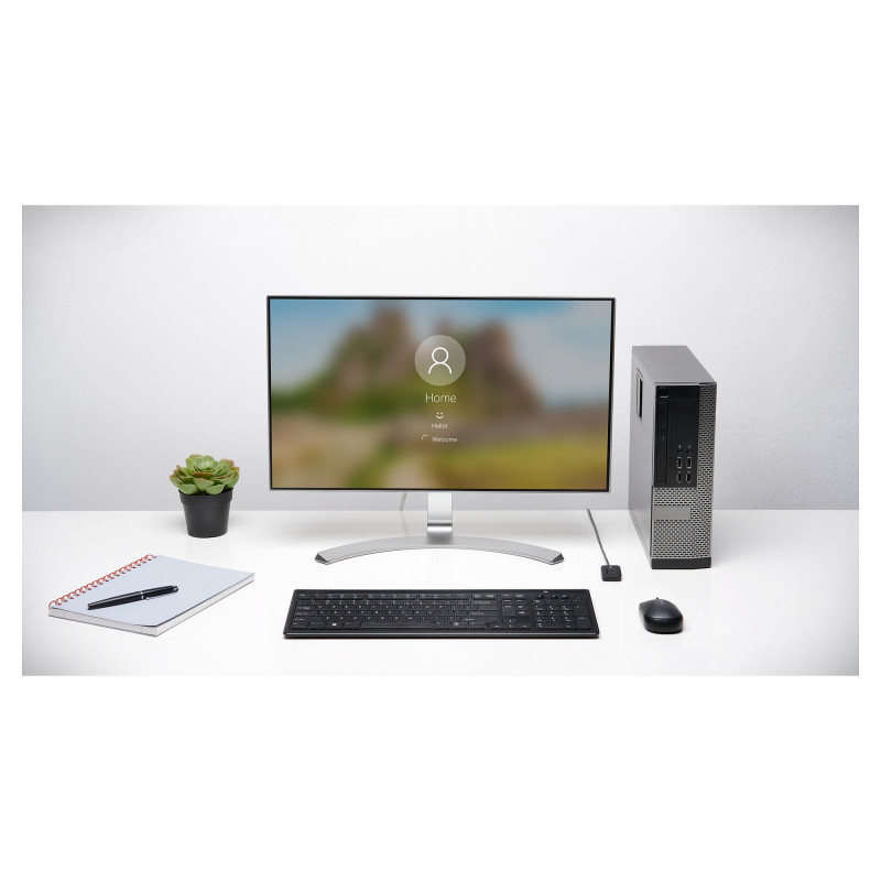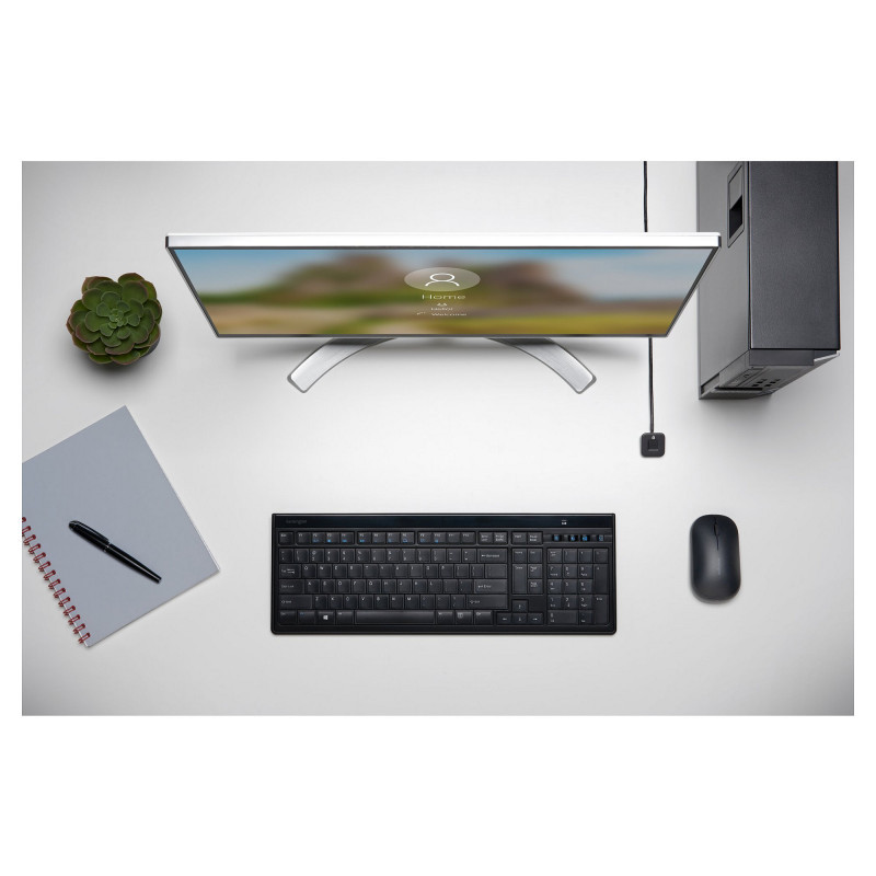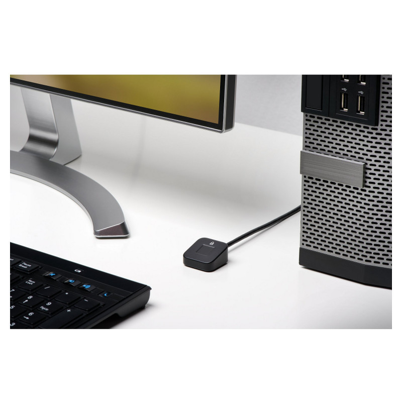 "Kensington VeriMark Desktop Fingerprint Key. Width: 29 mm, Depth: 29 mm, Height: 15 mm. Power consumption: 100 mA, DC input voltage: 5 V. Product colour: Black. Certification: FCC, CE, RCM, REACH, WEEE, RoHS, WHQL,Windows Hello, FIDO U2F. Country of origin: Taiwan, Products per master (outer) case: 5 pc(s), Master (outer) case gross weight: 820 g"\n"With cutting-edge biometric technology and compatibility with Microsoft services - including Windows Hello™, Windows Hello™ for Business, Office 365, Microsoft Entra ID and Outlook - the VeriMark™ Desktop USB-C®/USB-A Windows Hello™ Fingerprint Key is the ideal business-class security peripheral for enterprise desktop PC deployment."