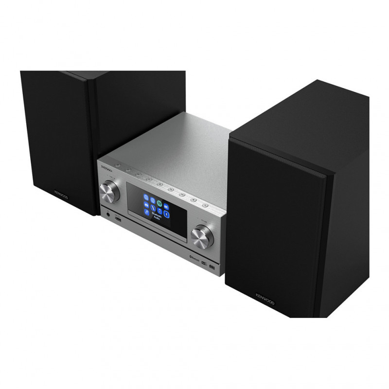 "Kenwood M-9000S. Type: Home audio mini system, Product colour: Silver, Number of optical discs: 1 discs. RMS rated power: 50 W, Speaker type: 2-way, Impedance: 6 Ω. Supported radio bands: DAB+, FM, FM band range: 87.5 - 108 MHz, Internet radio services supported: Spotify. Display type: TFT, Backlight colour: Multicolour. Audio formats supported: CBR, MP3, MP3 VBR"\n"Smart Micro Hi-Fi System