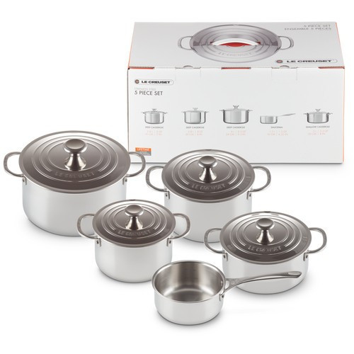 Le Creuset 3-Ply Plus Topfset fünfteilig, silber