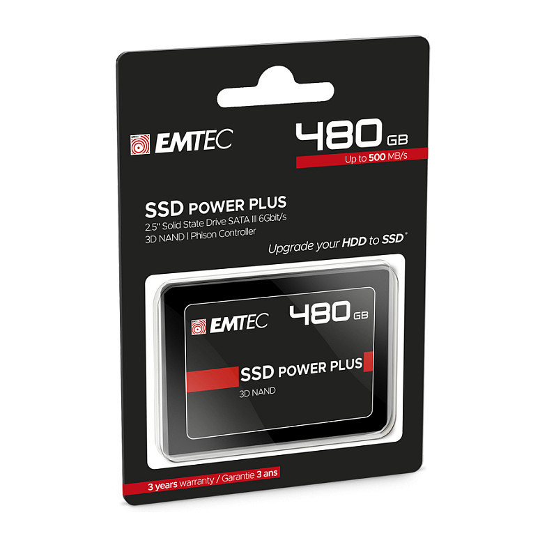 "Emtec X150 Power Plus. SSD capacity: 480 GB, SSD form factor: 2.5"", Read speed: 520 MB/s, Write speed: 500 MB/s, Data transfer rate: 6 Gbit/s, Component for: PC"\n"Power up your computer in seconds, And discover a new era of computing.