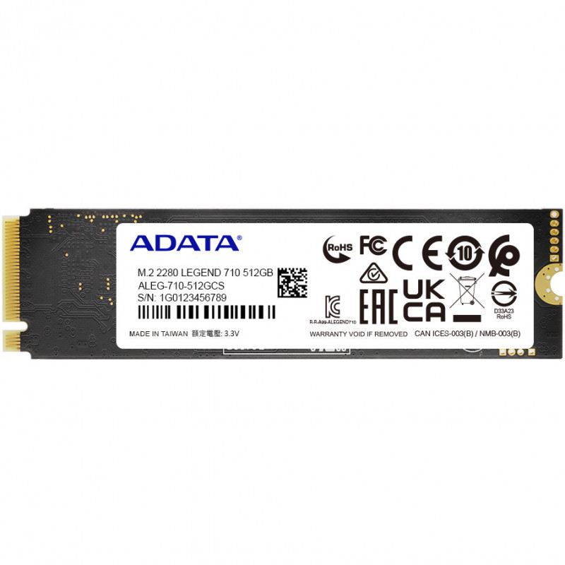 "ADATA LEGEND 710. SSD capacity: 512 GB, SSD form factor: M.2, Read speed: 2400 MB/s, Write speed: 1000 MB/s, Component for: PC/Laptop"\n"Enhancing Your Creativity