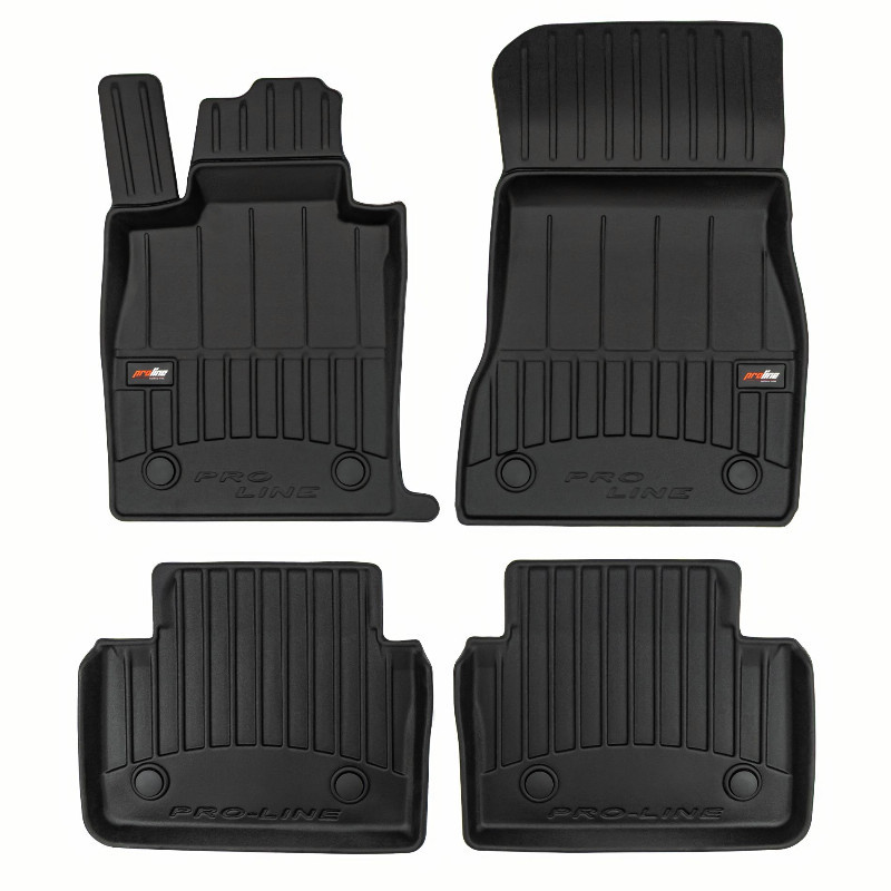 Guminiai ProLine 3D kilimėliai: (aukštos kokybės plastiko, gumos mišinys / TPE, komplektas - 4vnt., juodi, krašto aukštis 7 cm, montavimo būdas - spaustukai). AUTOMOBILIŲ KILIMĖLIAI FROGUM 3D PROLINE LUXURY • Dėl naujoviškos 3D skenavimo technologijos atitinka idealiai; • Kraštai papildomai apsaugoti – aukštis 7 cm, visada švarus automobilis; • Itin patvari medžiaga su unikalia neslystančia struktūra, atspari nešvarumams. • Išskirtinis stabilumas dėl spaustukų – lengvai montuojama spustelėjus; • Pakojo zonos apsauga – komfortas, leidžiantis nuleisti vairuotojo koją; 3D ProLine aukštos kokybės guminiai kilimėliai padeda išlaikyti automobilį švarų. Modernus ir funkcionalus dizainas, ir ypač aukštas kraštas garantuoja efektyvų vandens ir purvo surinkimą ir neleidžia jiems išbėgti. Taip automobilio salonas išlieka švarus. Pagaminti iš aukštos kokybės gumos, kurioje nėra toksiškų komponentų. Bekvapis. Kilimėliai idealiai atitinka ir puikiai priglunda prie salono grindų. Guminiai kilimėliai išlaiko savo elastingumą net esant temperatūros pokyčiams. Specialus paviršius neleidžia kilimėliams slysti vairuojant, o tai daro didelę įtaką saugumui ir kelionės patogumui