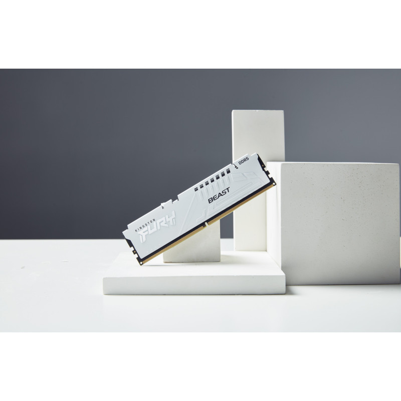 "Kingston Technology FURY Beast 16GB 5200MT/s DDR5 CL40 DIMM White XMP. Component for: PC, Internal memory: 16 GB, Memory layout (modules x size): 1 x 16 GB, Internal memory type: DDR5, Memory form factor: 288-pin DIMM, CAS latency: 40"\n"Up to 6800MT/s