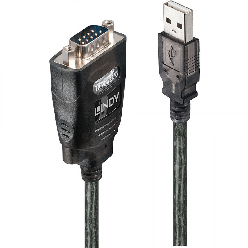 "Lindy USB to Serial Converter with COM Retention. Product colour: Black, Cable length: 1.1 m, Connector 1: USB Type-A. Quantity per pack: 1 pc(s). Certification: CE, FCC. Weight: 70 g"\n"The Lindy USB to Serial Converter with COM retention allows easy connection of peripheral devices featuring 9 Way Serial RS232 to a USB Type A port.