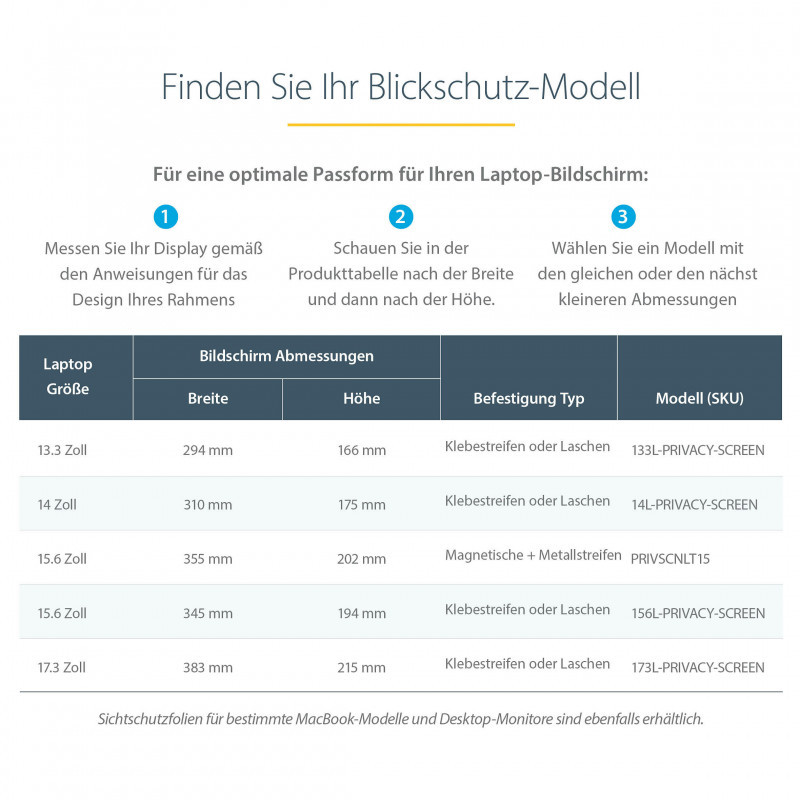 "StarTech.com 15.6-inch 16:9 Laptop Privacy Filter, Anti-Glare Privacy Screen w/51% Blue Light Reduction, Notebook Screen Protector w/ +/- 30 Degrees Viewing Angle, Matte/Glossy. Maximum screen size: 39.6 cm (15.6""). Aspect ratio: 16:9. Suitable for: Laptop, Type: Frameless display privacy filter. Surface finish: Glossy / Matt, Light transmission: 60%, Limits viewing angle: 30°. Weight: 36 g"\n"Prevent visual eavesdropping by limiting the viewing angles of your computer screen.