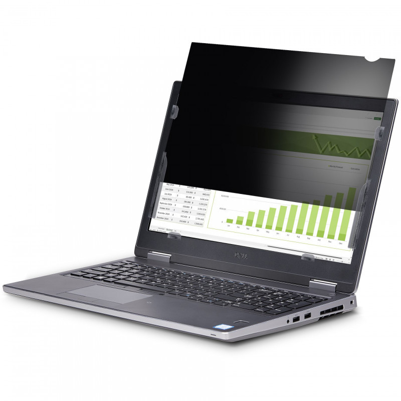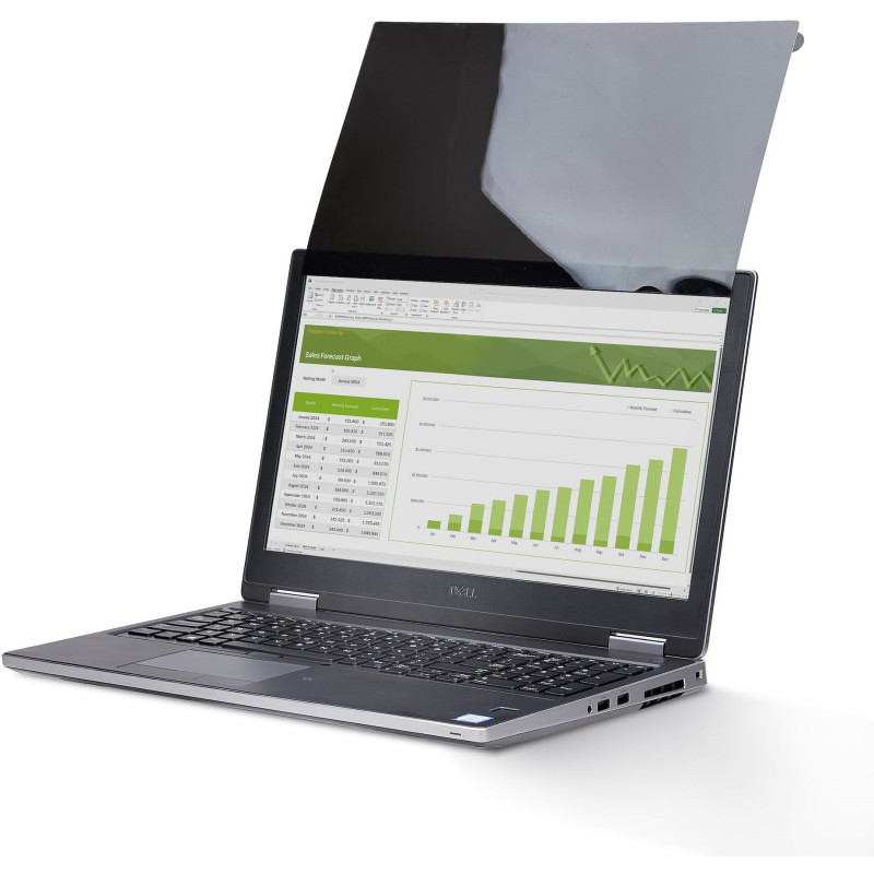 This privacy filter is a convenient and cost-effective solution to protect confidential data from unwanted viewers. The privacy shield darkens your computer's screen from the side while providing a clear viewing angle of 60 degrees (+/- 30 degrees from center) to the user.