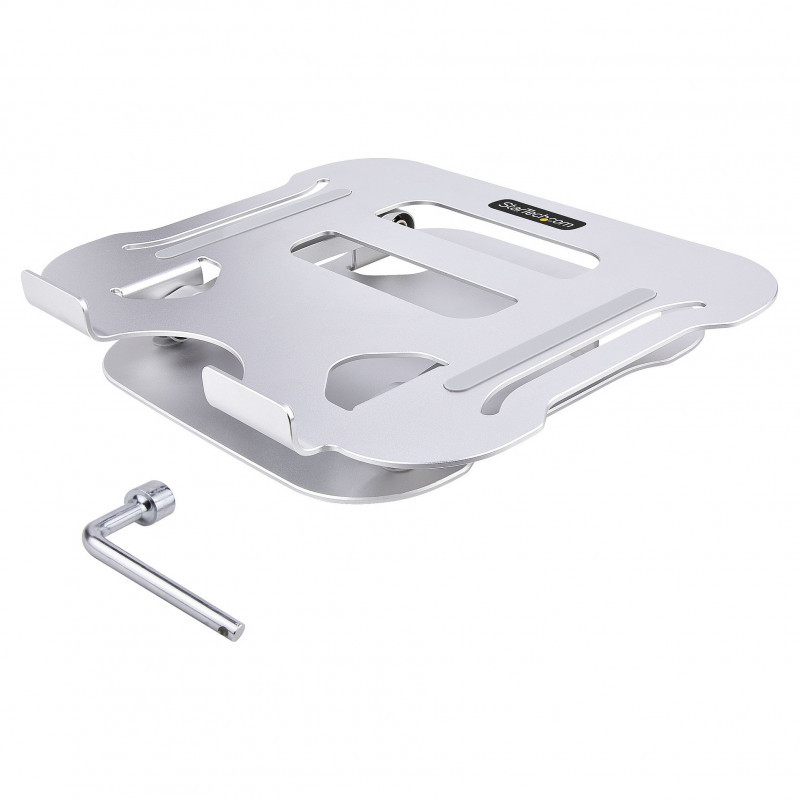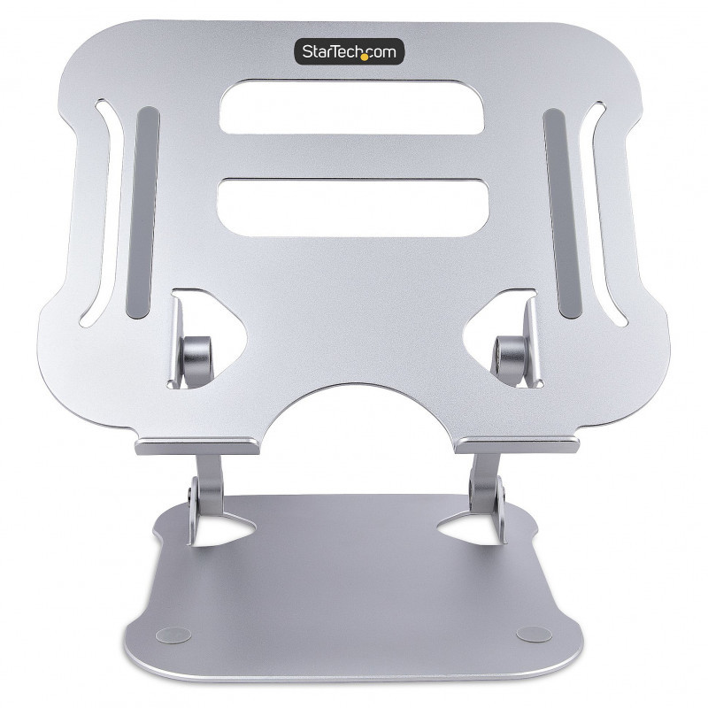"StarTech.com Laptop Stand for Desk, Ergonomic Laptop Stand Adjustable Height, Aluminum, Portable, Supports up to 22lb (10kg), Foldable Laptop Holder for Desk - Angled Notebook Computer Riser/Lift. Product type: Laptop stand, Product colour: Silver, Material: Aluminium. Height adjustment range: 33.2 - 120 mm. Width: 226 mm, Depth: 269 mm, Height: 50 mm. Package width: 235 mm, Package depth: 280 mm, Package height: 60 mm. Master (outer) case width: 290 mm, Master (outer) case length: 620 mm, Master (outer) case height: 490 mm"\n"Variable Height and Tilt | Vented | Ligthweight (1.5lb/714g)