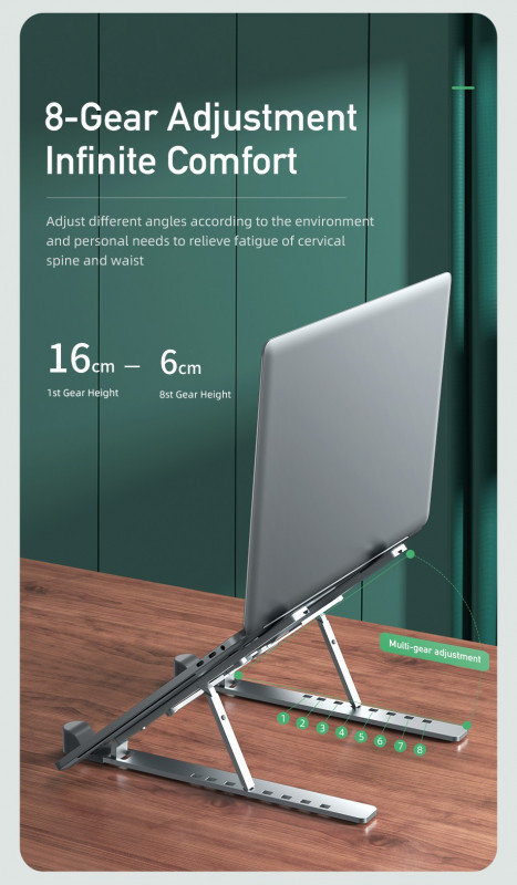 Sulankstomas nešiojamo kompiuterio stovas Awei X26 sidabrinis
