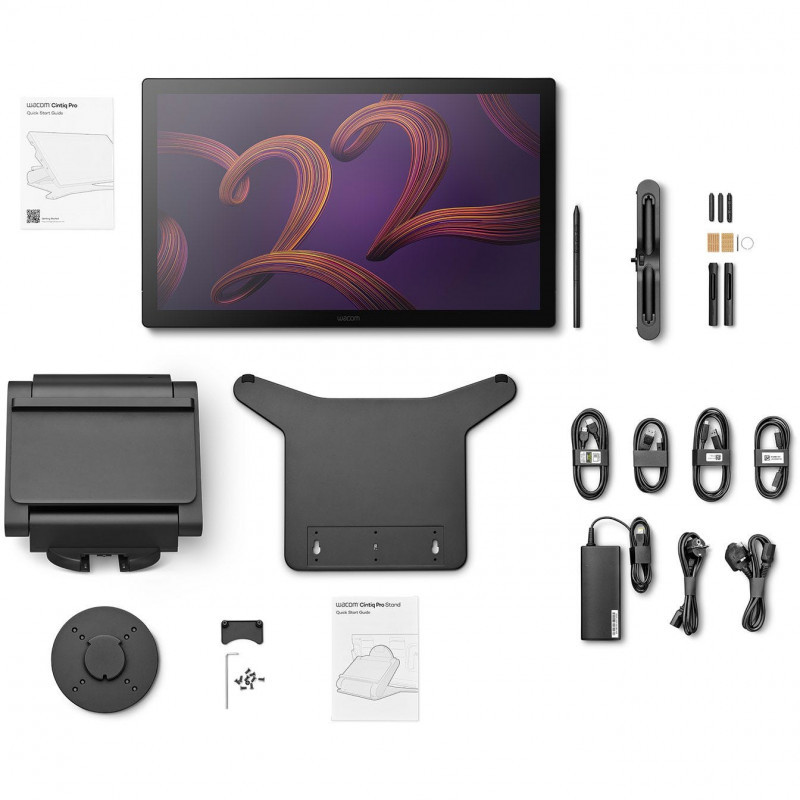 Engineered to let professionals work and move in complete harmony, Wacom Cintiq Pro 22 requires either the Wacom Cintiq Pro 22 Stand (included) or a compatible VESA 100 monitor arm (like in our Wacom Cintiq Pro 22 Bundle with Ergotron). The Wacom Cintiq Pro 22 Stand is designed specifically to bring maximum comfort, flexibility and stability to any desktop studio or remote workspace and allows for rapid adjustment of the height, angle or up to 20 degrees of rotation in each direction for drawing with natural hand movements.