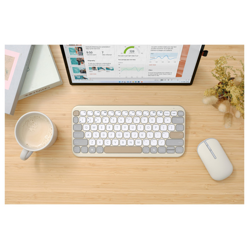 This ultrathin keyboard is available in distinctive Oat Milk and Green Tea Latte color schemes that stand out from the crowd. In addition, essentials like the Spacebar, Enter, and Esc keys are in a darker shade for better visibility. All this gives ASUS Marshmallow keyboard KW100 a smart, youthful look that perfectly complements modern laptops, PCs, and tablets.
