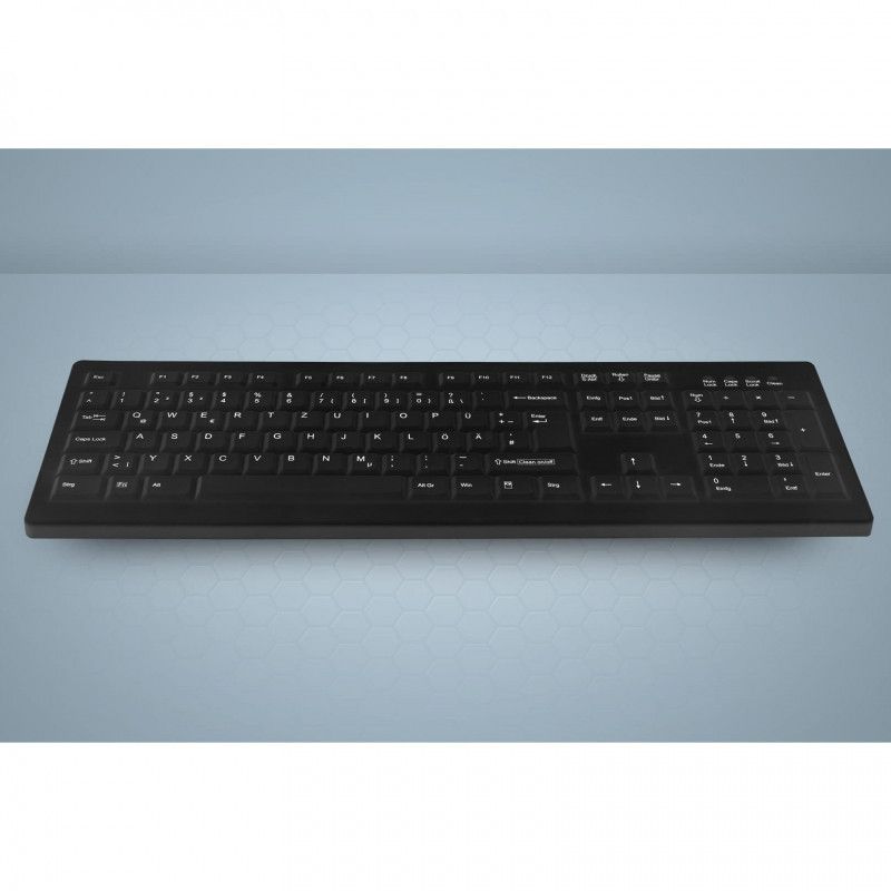 The AK-C8100 is a high quality, reliable PC keyboard. The purification and disinfection capacity makes it a perfect fit in hospitals and at practitioners, as well as office, administration and industrial environments. The silicone membrane protects the key field against ingress of dirt and fluids.