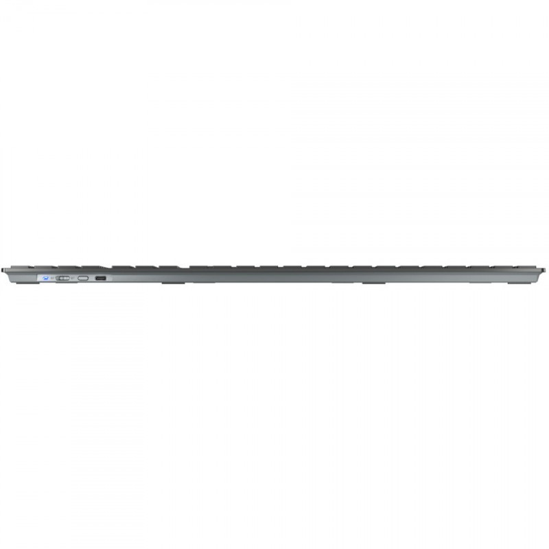 "CHERRY KW 9100 SLIM. Keyboard style: Straight. Connectivity technology: Wireless, Device interface: RF Wireless + Bluetooth, Keyboard layout: QWERTY, Keyboard number of keys: 108. Cable length: 1.2 m. Recommended usage: Universal. Product colour: Black"\n"Quality meets design and innovation. The CHERRY KW 9100 SLIM is a silver-black version of the keyboard from the popular DW 9100 SLIM desktop set. As with the tried and tested desktop version, first-class workmanship, perfectly coordinated design and innovative functions come together.