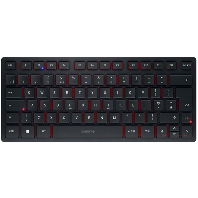 "CHERRY KW 9200 MINI. Keyboard form factor: 75%. Keyboard style: Straight. Connectivity technology: Wired & Wireless, Device interface: USB + RF Wireless + Bluetooth, Keyboard key switch: Scissor key switch, Keyboard layout: QWERTY, Keyboard number of keys: 79, Recommended usage: Universal. Product colour: Black"\n"Rechargeable multi-device compact keyboard with 2.4 GHz wireless, Bluetooth® 5.0 and cable connection
