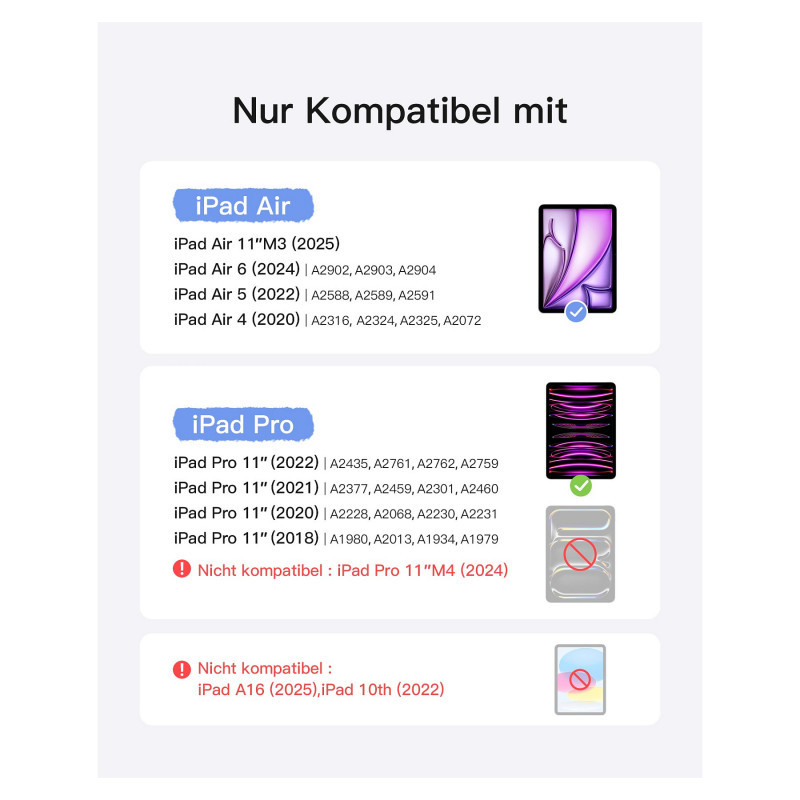 "Inateck KB04111_PURPLE. Type: Keyboard, Brand compatibility: Apple, Compatibility: iPad Air 11, iPad Pro 11"\n