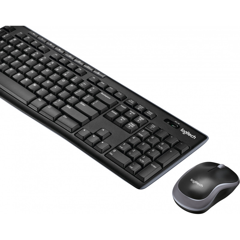 "Logitech Wireless Combo MK270. Keyboard form factor: Full-size (100%). Keyboard style: Straight. Connectivity technology: Wireless, Device interface: RF Wireless, Keyboard layout: QWERTY, Keyboard number of keys: 111, Recommended usage: Home. Product colour: Black. Mouse included"\n