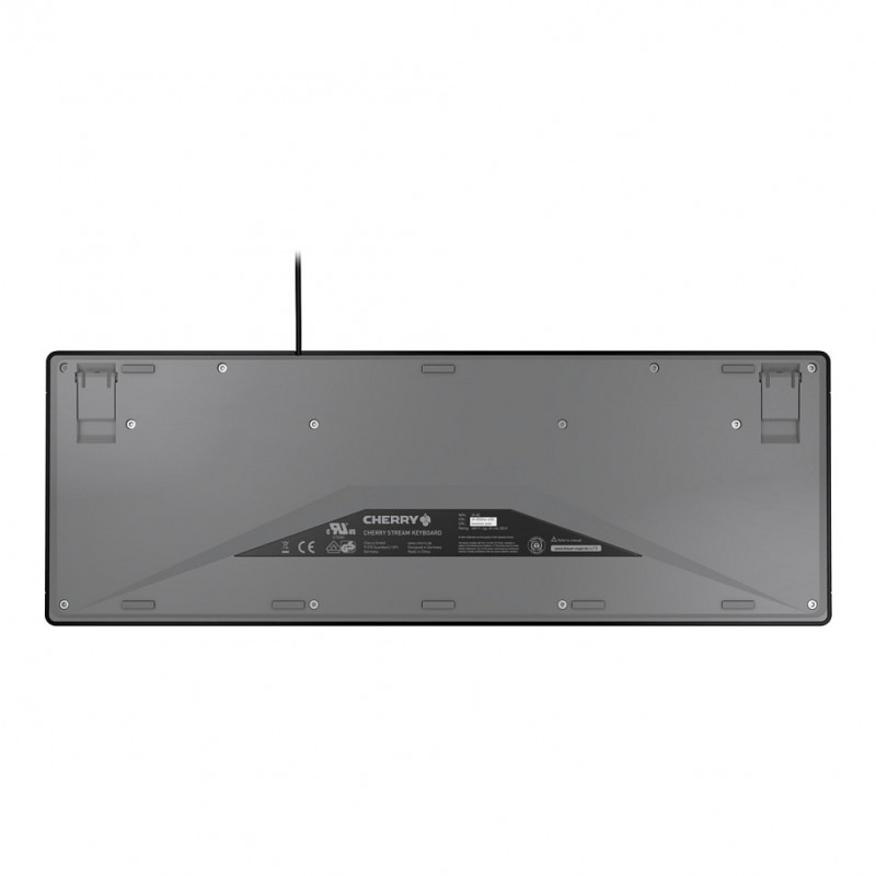 "CHERRY STREAM. Keyboard form factor: Full-size (100%). Keyboard style: Straight. Connectivity technology: Wired, Device interface: USB, Keyboard key switch: Scissor key switch, Keyboard layout: QWERTY, Keyboard number of keys: 115. Cable length: 1.8 m. Recommended usage: Home/Office. Product colour: Black, Grey"\n"The CHERRY STREAM KEYBOARD meets the highest standards and gives you an incomparable typing feel. Its mixture of design, elegance and purity gives it the potential to be a very popular keyboard for the office and at home.