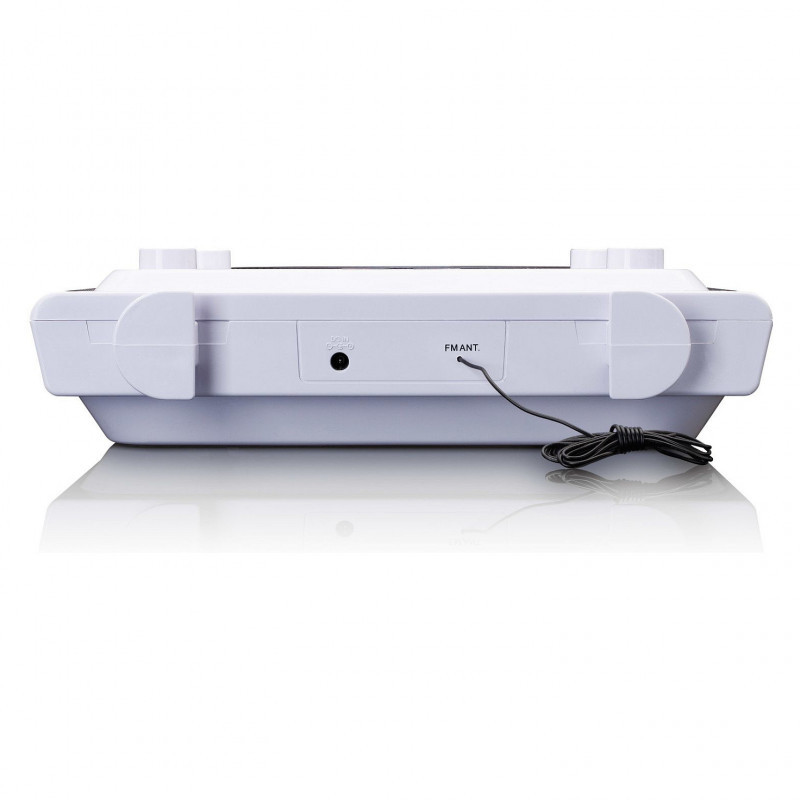 "Lenco KCR-150. Radio type: Wall mounted, Tuner type: Digital, Supported radio bands: FM. Display type: LCD. Bluetooth range: 10 m. Product colour: White, Volume control: Buttons, Antenna type: External. Power source: DC, Power consumption (typical): 12 W"\n"The Lenco KCR-150 is a handy kitchen radio with a streamlined and uncluttered look. The clear buttons and bright screen make the radio easy to use. You can listen to countless radio stations and your own CDs, or you can connect your smartphone or tablet via Bluetooth. The Lenco KCR-150 features an alarm clock function and an AUX input. So the Lenco KCR-150 is not at all out-of-place in the bedroom. Set the alarm and fall asleep to the sound of soothing music. The next morning, the radio wakes you up exactly on time.