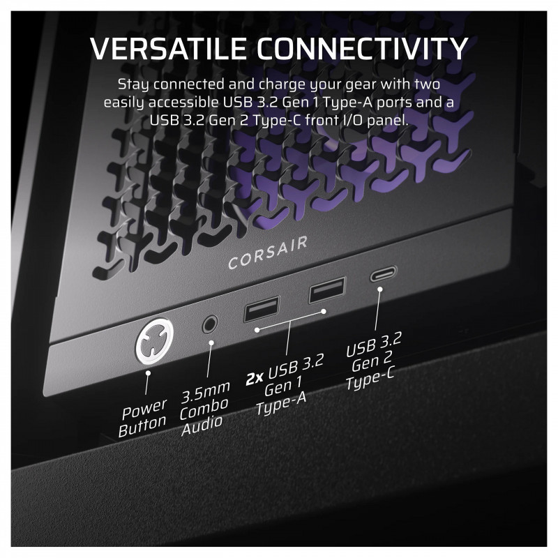 Puts your connections within easy reach, including a USB 3.2 Gen 2 Type-C Port, 2x USB 3.2 Gen 1 Type-A ports, and a combination audio/microphone jack."