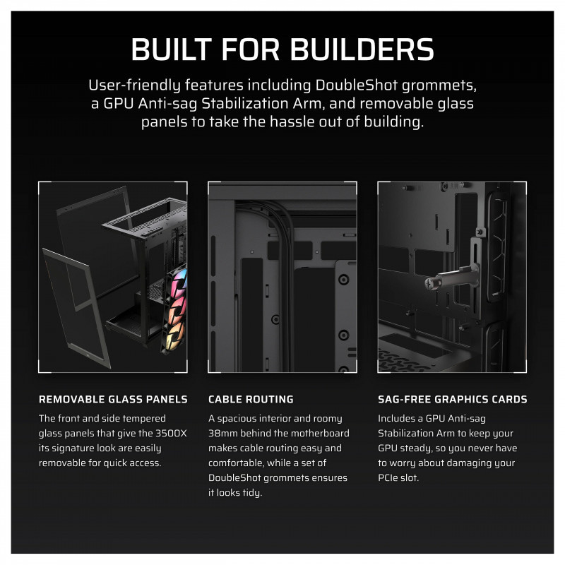 With a modern design approach to a mainstream PC format, the 3500X has the convenient features to take the hassle out of your build.