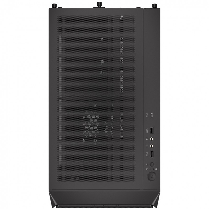 This is thanks to the spacious interior, which can fit up to 7 air conditioners fans. What’s more, the front and top panels are also filters, so there’s no need for additional dust covers. Compared to traditional solutions, a single layer of filters improves air circulation and makes it easier to keep the components in a pleasant breeze (because cooling is extremely important to us).