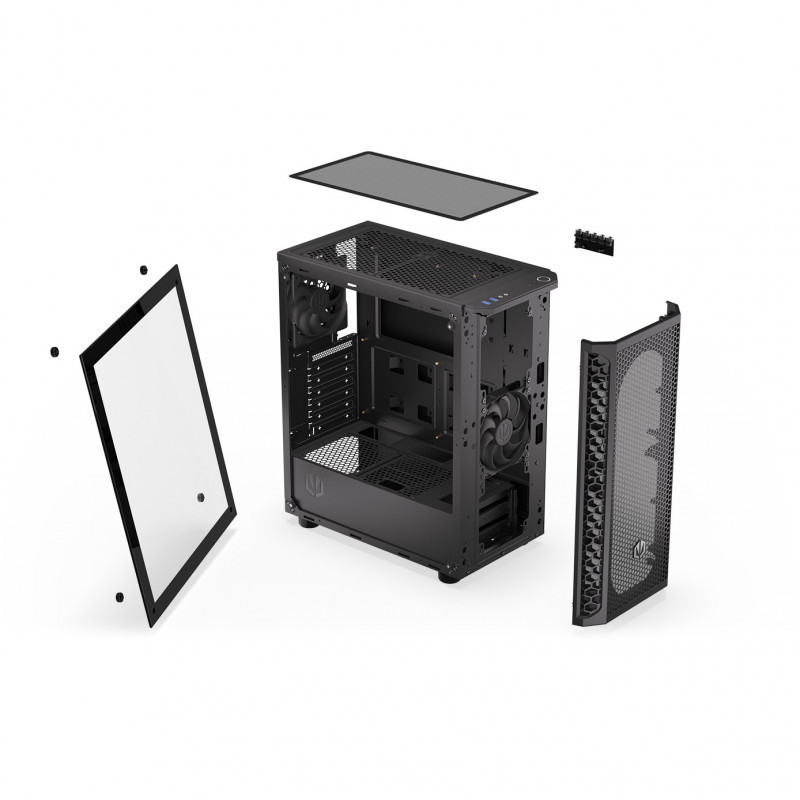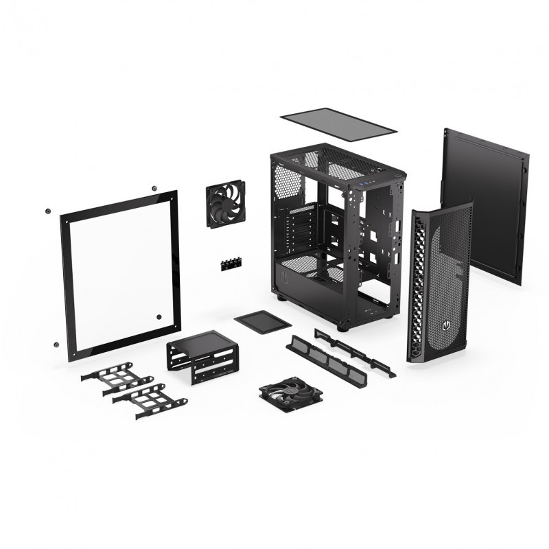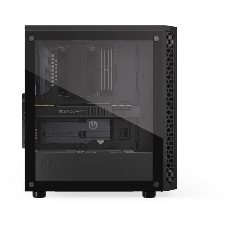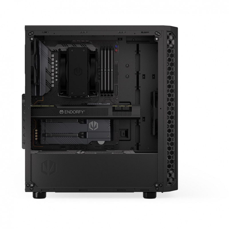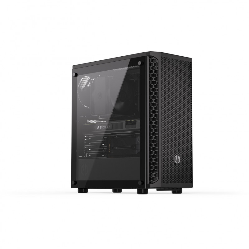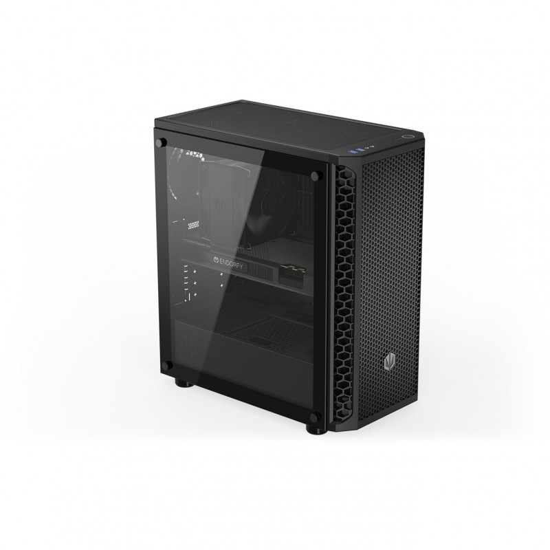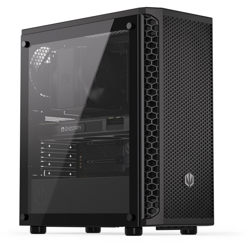 "ENDORFY Signum 300 Core. Form factor: Tower, Type: PC, Product colour: Black. Front fans installed: 1x 120 mm, Rear fans installed: 1x 120 mm, Front radiator sizes supported: 240,360,120 mm. Supported HDD sizes: 2.5,3.5"". Width: 413 mm, Depth: 216 mm, Height: 447 mm"\n"Your hand-picked components deserve a “home sweet home” — with the Signum 300 Core you can create an airy and good-looking environment for your PC to perform to the best of its abilities. It’ll keep your rig pleasantly cool while allowing you to peek inside to admire its ARGB-backlit beauty.