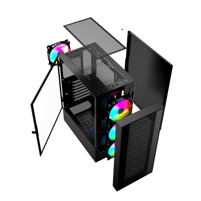 Gembird Fornax 4000 ARGB žaidimų ATX kompiuterio dėklas, Midi Tower, apšvietimas, juodas