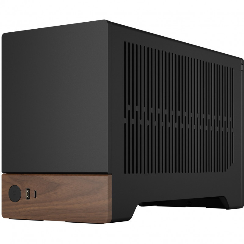 "Fractal Design Terra . Form factor: Small Form Factor (SFF), Type: PC, Product colour: Graphite. Supported power supply form factors: SFX, SFX-L. Bottom fans diameters supported: 120 mm, Side radiator sizes supported: 120 mm. Supported HDD sizes: 2.5"", SSD form factor: 2.5"". Width: 153 mm, Depth: 343 mm, Height: 218 mm"\n"Terra is a PC case designed and engineered to reshape the small form factor gaming experience. Inspired by the homes of modern gamers, Terra incorporates boutique design features such as thick panels cut from anodized aluminum, CNC-milled details and FSC-certified solid walnut. Inside, it includes a PCIe 4.0 riser cable and features a stepless slidable central wall for build flexibility, providing space for a powerful GPU up to 322 mm in length.