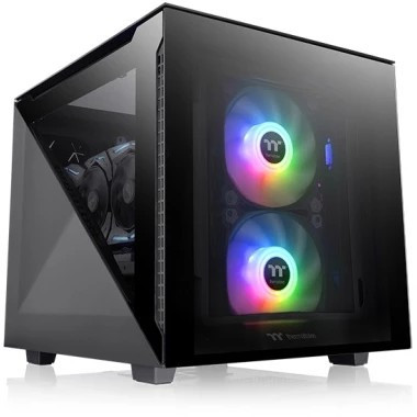 "Thermaltake Divider 200 TG. Form factor: Micro Tower, Type: PC, Product colour: Black. Front fans installed: 1x 200 mm, Front fans diameters supported: 120,140,200 mm, Rear fans installed: 1x 120 mm. Supported HDD sizes: 2.5,3.5"". Width: 333.2 mm, Depth: 425.7 mm, Height: 364.7 mm"\n"The Divider 200 TG is a Micro-ATX case that comes with one preinstalled 200mm front fan, one 120mm standard rear fan, three durable 3mm tempered glass windows at the front, top, and the left side.