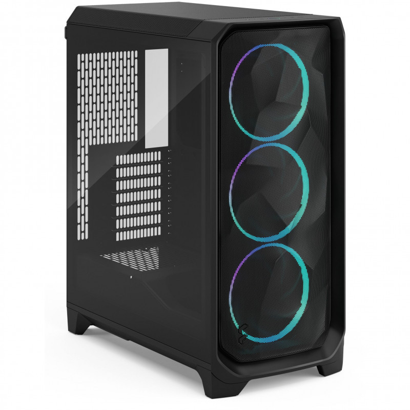 "Fractal Design Meshify 3 Black RGB TG Light Tint. Type: PC, Product colour: Black, Supported motherboard form factors: ATX, EATX, micro ATX, Mini-ITX. Power supply location: Bottom, Supported power supply form factors: ATX. Front fans installed: 3x 140 mm, Front fans diameters supported: 120,140 mm, Rear fans diameters supported: 120 mm. Supported HDD sizes: 2.5,3.5"", SSD form factor: 2.5"". Width: 229 mm, Depth: 433 mm, Height: 507 mm"\n"Experience advanced cooling and expressive, aerodynamic design. An evolution of our mesh performance series, Meshify 3 offers performance-boosting engineering upgrades, three powerful Momentum fans, and next-level atmospheric lighting in Ambience Pro RGB versions.