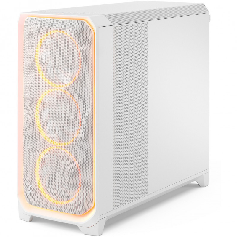 "Fractal Design Meshify 3 XL Ambience Pro RGB White TG Clear Tint. Type: PC, Product colour: White, Supported motherboard form factors: ATX, EATX, ITX, micro ATX, SSI CEB, SSI EEB. Supported power supply form factors: ATX. Front fans installed: 3x 140 mm, Front fans diameters supported: 120,140,180 mm, Side fans diameters supported: 140 mm. Supported HDD sizes: 2.5,3.5"", SSD form factor: 2.5"". Width: 245 mm, Depth: 575 mm, Height: 515 mm"\n"Experience advanced cooling and expressive, aerodynamic design in a spacious format. An evolution of our mesh performance series, Meshify 3 XL offers performance-boosting engineering upgrades, three powerful Momentum fans, and next-level atmospheric lighting in Ambience Pro RGB versions.