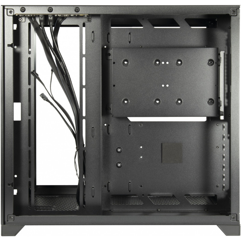 Further the C-703 Vision offers mounting space for three 2.5"" SSDs and two 3.5"" HDDs in a separate mount. The power supply, as well as remaining or overlong cables, is hidden behind the Mainboard holder.