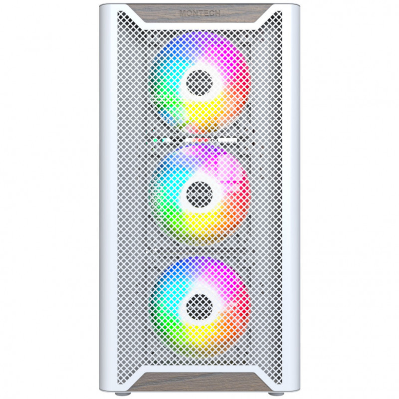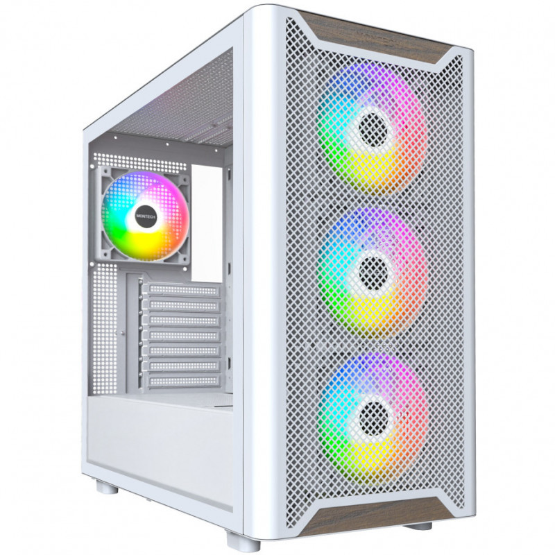 "Montech XR Wood. Form factor: Midi Tower, Type: PC, Product colour: White. Power supply location: Bottom, Supported power supply form factors: ATX. Front fans installed: 3x 120 mm, Front fans diameters supported: 120,140 mm, Side fans diameters supported: 120 mm. Supported HDD sizes: 3.5"", SSD form factor: 2.5"". Width: 230 mm, Depth: 475 mm, Height: 456 mm"\n"Nature Meets High Airflow Power