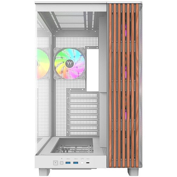 The View 380 XL WS ARGB Snow Mid Tower Chassis is a dual-chamber ATX case, accented with stylish wood elements, featuring Hidden-Connector Motherboard support, three 120mm ARGB Lite Reverse Fan on the motherboard side and one 120mm ARGB Lite Fan at the rear, and space for a 360mm radiator at both the top and motherboard side.