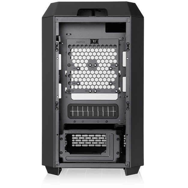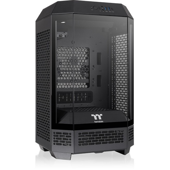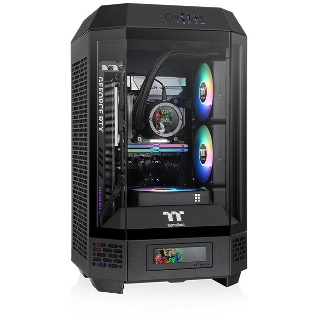 "Thermaltake The Tower 250. Form factor: Mini Tower, Type: PC, Product colour: Black, White. Display type: LCD, Display diagonal: 9.91 cm (3.9""), Display resolution: 128 x 480 pixels. Front fans installed: 2x 120 mm, Front fans diameters supported: 120 mm, Side fans diameters supported: 120,140 mm. Supported HDD sizes: 2.5,3.5"". Width: 300 mm, Depth: 281 mm, Height: 506 mm"\n"The Tower 250 is the latest mini-ITX case in the Tower series, featuring a classic vertical design with an octagonal prism shape. The small form factor doesn't compromise on cooling performance, as it includes two CT120 fans and supports up to eight 120mm fans, as well as a 360mm AIO radiator on the right side. Users can also choose to add the separately sold 3.9"" LCD Screen Kit and Chassis Stand Kit to make The Tower 250 more visually appealing.