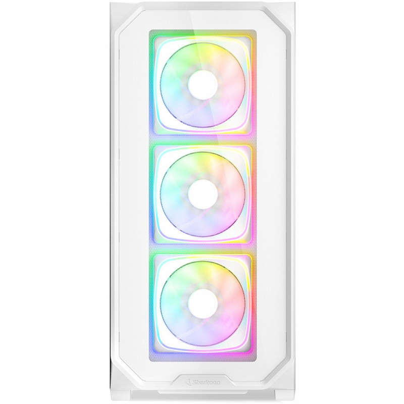 "Sharkoon AK5G RGB. Form factor: Midi Tower, Type: PC, Product colour: White. Front fans installed: 3x 120 mm, Front fans diameters supported: 120 mm, Side fans diameters supported: 120,140 mm. Supported HDD sizes: 2.5,3.5"". Width: 225 mm, Depth: 465 mm, Height: 485 mm"\n"With its futuristic look, including the tempered-glass side and front, the AK5G RGB is the ultimate home for high-end hardware which has to be seen. The inside of this ATX case has been spaciously designed and offers room for up to eleven fans or two radiators. In addition, modern input-output connections and support for the new BTF mainboards will all ensure that the case stays future-proof.