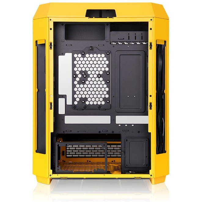 "Thermaltake Tower 600. Form factor: Midi Tower, Type: PC, Product colour: Yellow. Power supply location: Bottom, Supported power supply form factors: PS2. Side fans diameters supported: 120,140 mm, Rear fans diameters supported: 120,140 mm, Top fans installed: 2x 140 mm. Supported HDD sizes: 3.5"", SSD form factor: 2.5"". Width: 420 mm, Depth: 286.4 mm, Height: 550 mm"\n"The Tower 600 Bumblebee is an ATX case with a classic vertical case design and comes in an octagonal prism shape that is compatible with the latest hidden-connector motherboards. It supports up to a 420mm AIO radiator on the right side and a 360mm AIO radiator on the left side, and it can accommodate up to thirteen 120mm fans or nine 140mm fans. With a separately sold Chassis Stand Kit, users can enjoy a unique view with a special horizontal placement.