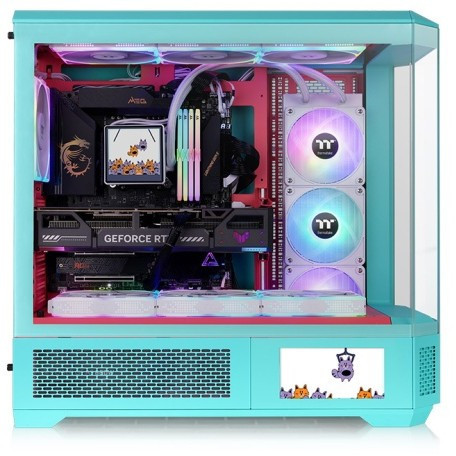 "Thermaltake CA-11H-00FLWN-00. Form factor: Full Tower, Type: PC, Product colour: Mint colour. Supported power supply form factors: PS2. Side fans diameters supported: 120,140 mm, Rear fans diameters supported: 120,140 mm, Top fans diameters supported: 120,140 mm. Supported HDD sizes: 3.5"", SSD form factor: 2.5"". Width: 249 mm, Depth: 584 mm, Height: 560 mm"\n"The View 600 TG Full Tower Chassis is an E-ATX case with four tempered glass panels, rotational PCI-E slots, a built-in GPU bracket, and supports up to ten 120/140mm fans and 360mm/420mm radiators. An optional 6"" LCD Panel Kit is available for enhanced visuals.