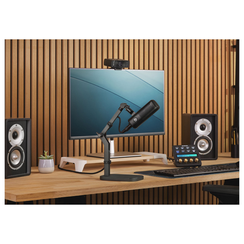 "Elgato Wave Desk Stand Studio Mounting Arm. Product type: Desktop microphone stand, Product colour: Black, Material: Metal. Weight: 1.88 kg, Maximum load weight: 1 kg. Packaging content: Wave Desk Stand, 4 cable ties, 1/4""-to-3/8"" and 1/4""-to-5/8"" adapters, Hex key, Quick Start Guide"\n"Compact and ultra-flexible, Wave Desk Stand helps you position your gear perfectly on any flat surface. Able to support up to 1 kg (2.2 lbs), it’s sturdy enough for heavy microphones, yet easy to move and adjust.