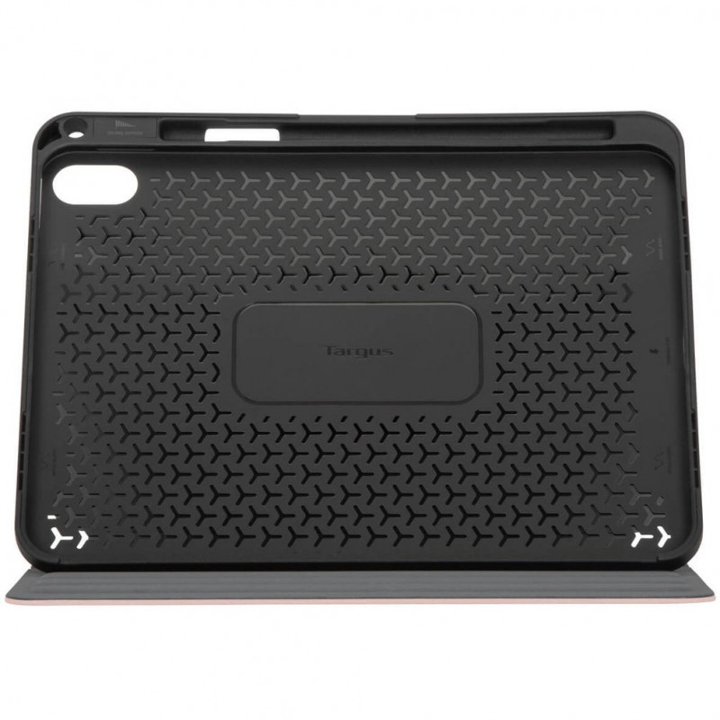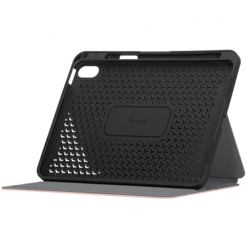 "Targus Click-In. Case type: Folio, Brand compatibility: Apple, Compatibility: iPad (10th gen.), Maximum screen size: 27.7 cm (10.9""), Number of stand modes: 3. Weight: 370 g"\n"The Targus® Click-In™ Case for iPad®(10th gen.) 10.9-inch provides strong, military-grade drop protection (up to 4 feet/1.2 metres)* in an ultra-slim design. Engineered for durability without adding weight, this case features a flexible tray with wrap-around bezel and reinforced corners, structured front and back covers, and a soft lining inside that safeguards your device screen from scratches.