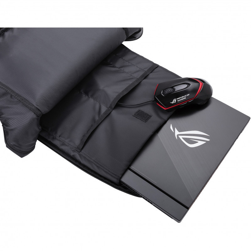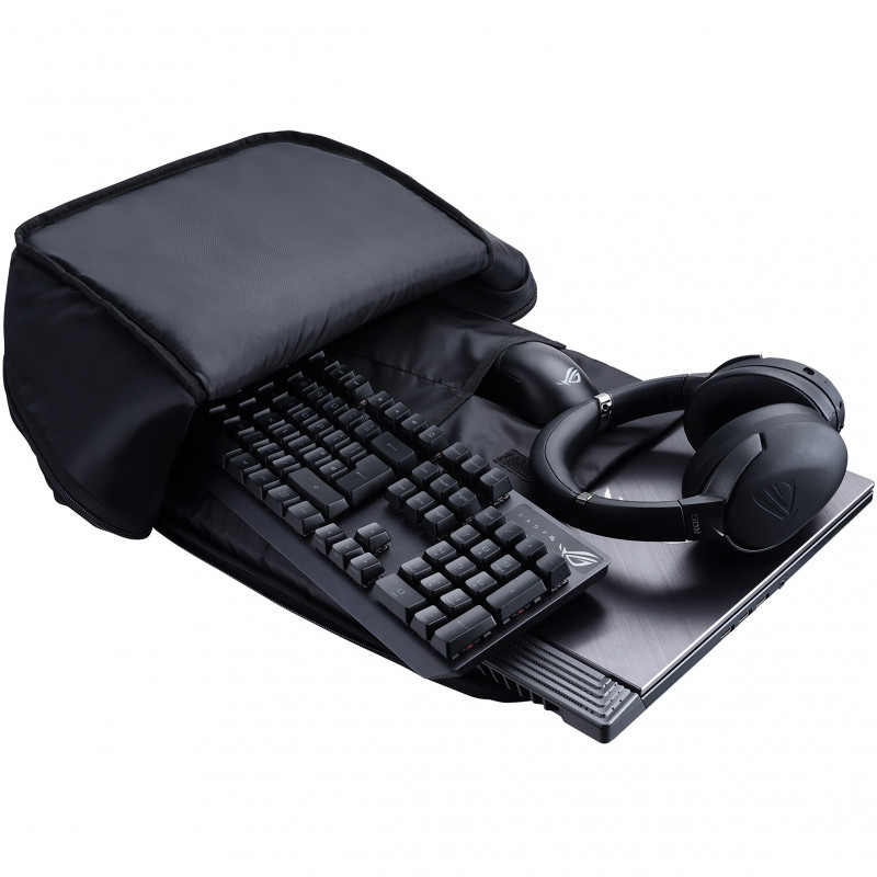 ROG Backpack BP1501G gives you the most comfort with a large area-covered AirMesh on the back of the backpack."