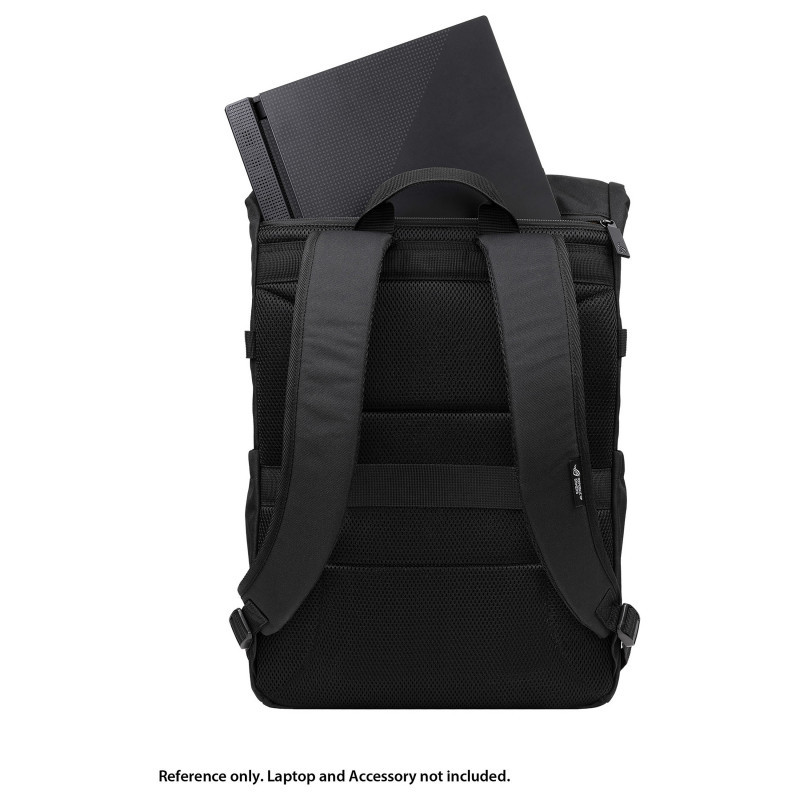 *18-inch laptops, such as the Strix SCAR 18, will fit in the laptop slot but not through the top zippered pocket."