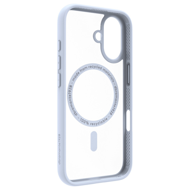 "dbramante1928 Grenen MS. Case type: Cover, Brand compatibility: Apple, Compatibility: iPhone 17, Surface coloration: Monochromatic, Product colour: Blue"\n"The Grenen MagSafe bumper case is a stylish accessory for your phone made from 100% recycled and recyclable plastic materials. It offers robust protection with 2m (6.5 ft) impact protection and features raised edges that safeguard both the camera and screen from potential damage. The clear back design allows you to showcase your phone's original color, while the bumper can be color-matched for a coordinated look."