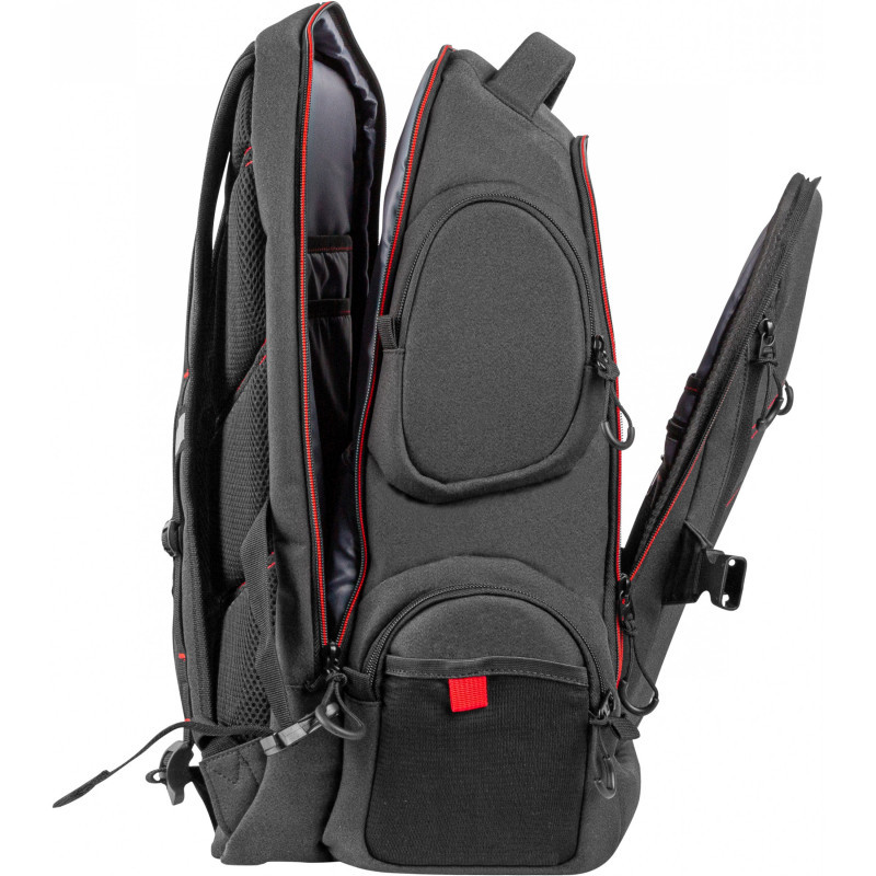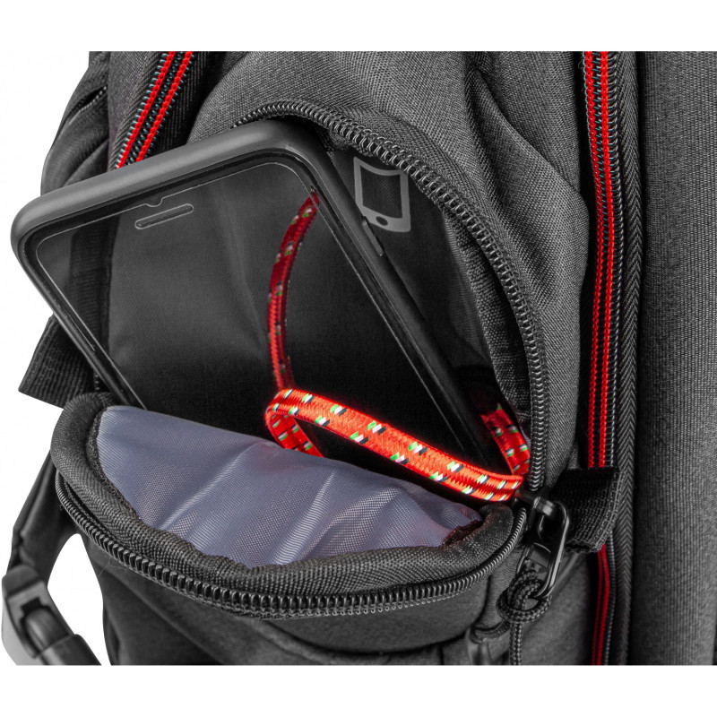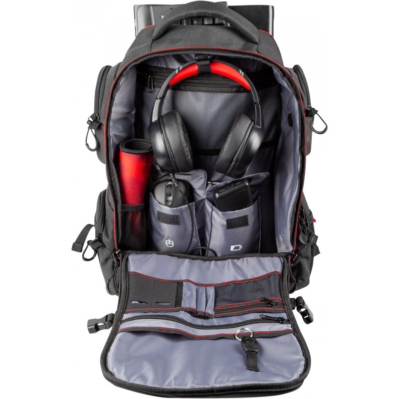 The spacious interior of the backpack allows you to take your 17.3” laptop and all the necessary accessories to your next gaming tournament. The extremely durable and rigid design ensures the full safety of the carried equipment.