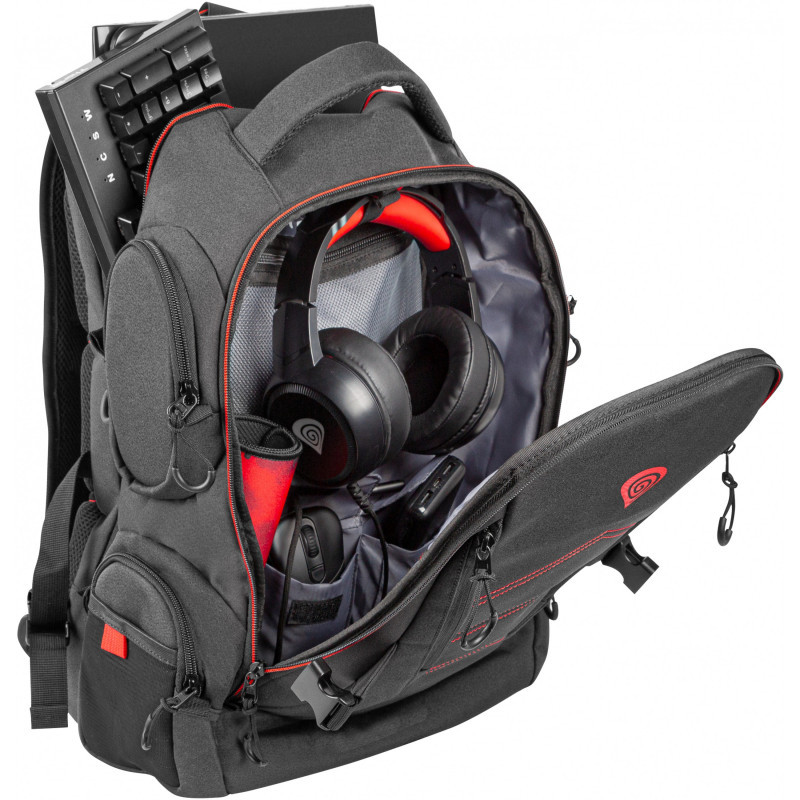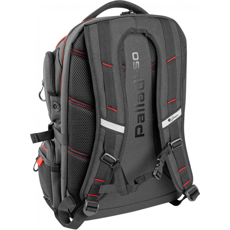 "GENESIS Pallad 550. Case type: Backpack, Maximum screen size: 43.9 cm (17.3""), Number of compartments: 2, Carrying handle(s), Shoulder strap. Weight: 1.4 kg. Surface coloration: Monochromatic"\n"The Pallad 550 is a backpack for all experienced gamers who often travel. It is made based on a modern design and in accordance with the requirements of every professional. Specifically developed to transport gaming hardware, it has enough space for a 17.3” laptop along with all peripheral accessories. Stand out from the crowd and secure all your gear with a backpack that emphasizes your gaming nature.