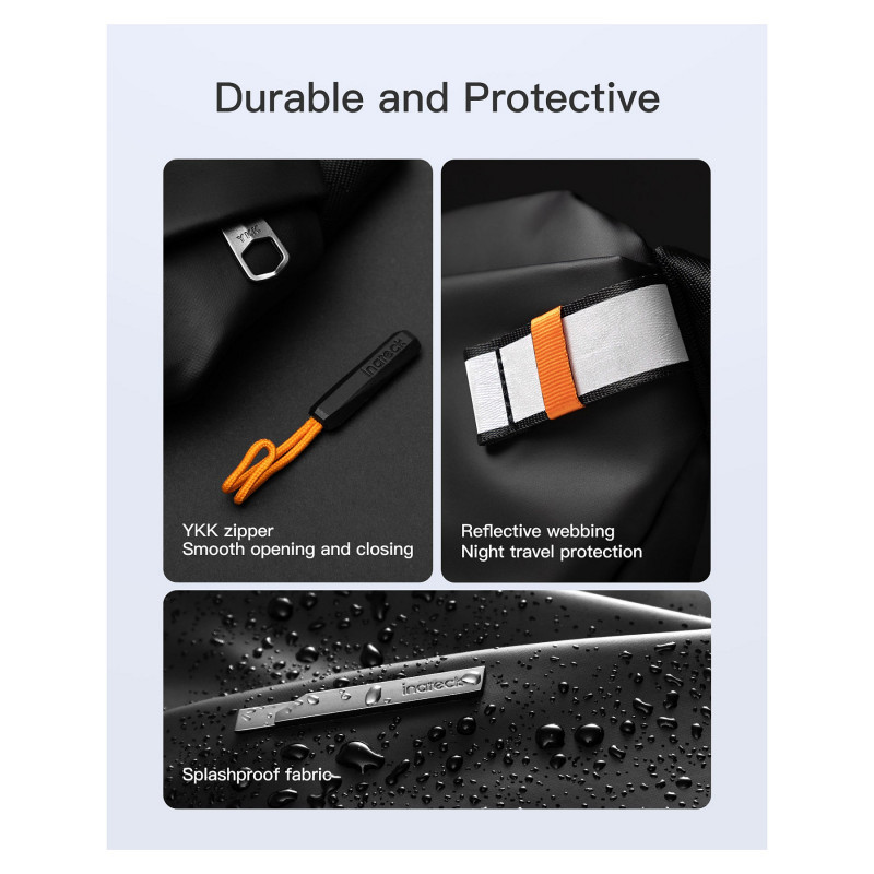 Lightweight and Stylish:The crossbody bag is only 0.59lb, making it lightweight and comfortable with no burden on your back. The front of the bag features reflective webbing to enhance safety during nighttime travel. It also serves as a hanging point for personalized decorations or other small items, adding a unique style. The front zippered pocket features a metal logo tag, and the orange zipper pull complements the lining, adding a touch of fashion