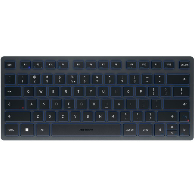 "CHERRY KW 7100 MINI BT. Keyboard style: Straight. Connectivity technology: Wireless, Device interface: Bluetooth, Keyboard key switch: Scissor key switch, Keyboard layout: QWERTY, Keyboard number of keys: 78, Recommended usage: Universal. Product colour: Blue"\n"The CHERRY KW 7100 MINI BT is a compact Bluetooth® wireless keyboard that is perfect for use on the go. Ideal for both personal and professional purposes: The multi-device keyboard can be connected to up to three different devices at the same time. The carry case provided makes the keyboard easy to store and transport, meaning it is always ready for use.