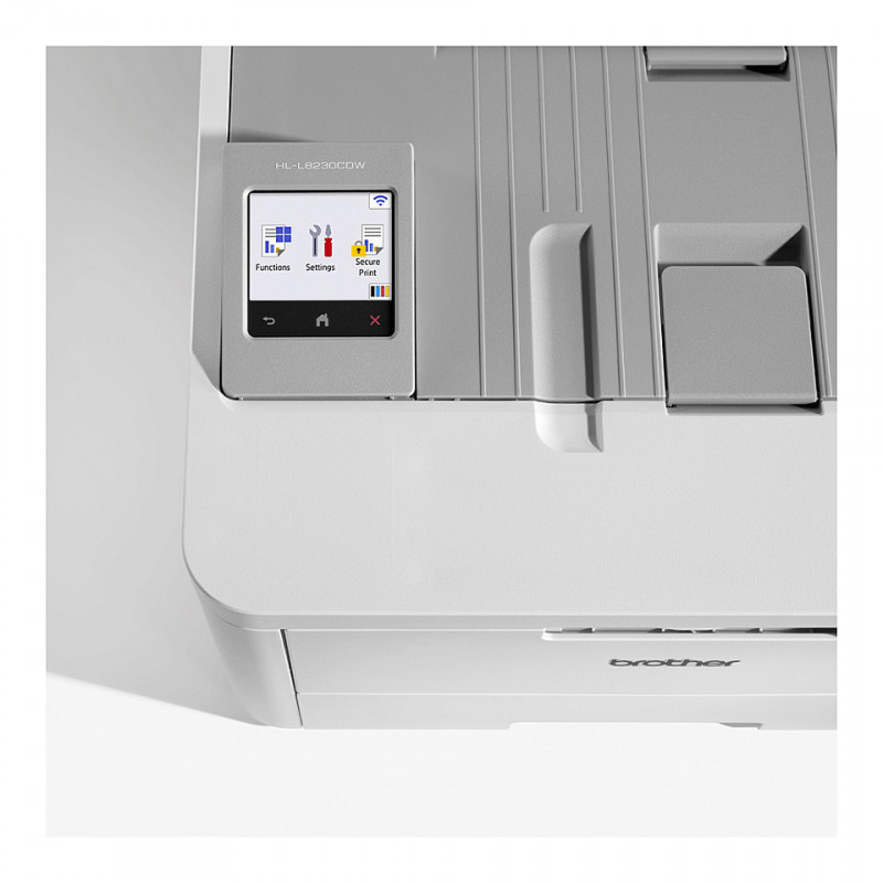 "Brother HL-L8230CDW. Print technology: LED, Colour. Number of print cartridges: 2. Maximum resolution: 600 x 600 DPI. Maximum ISO A-series paper size: A4. Print speed (black, normal quality, A4/US Letter): 30 ppm, Duplex printing. Wi-Fi. Product colour: White"\n"The space-saving HL-L8230CDW professional colour LED printer.Ideal for businesses, this user-friendly, wireless printer quietly delivers high-quality documents at speed without interruption. Featuring the latest industry-standard security, alongside the flexibility to tailor the device to suit you and your business, you can be confident that the HL-L8230CDW meets the needs of the most demanding office.Print directly from desktop or mobile app512MB Internal memory250 Sheet paper input trayAvailable under a managed print service (MPS) contract"