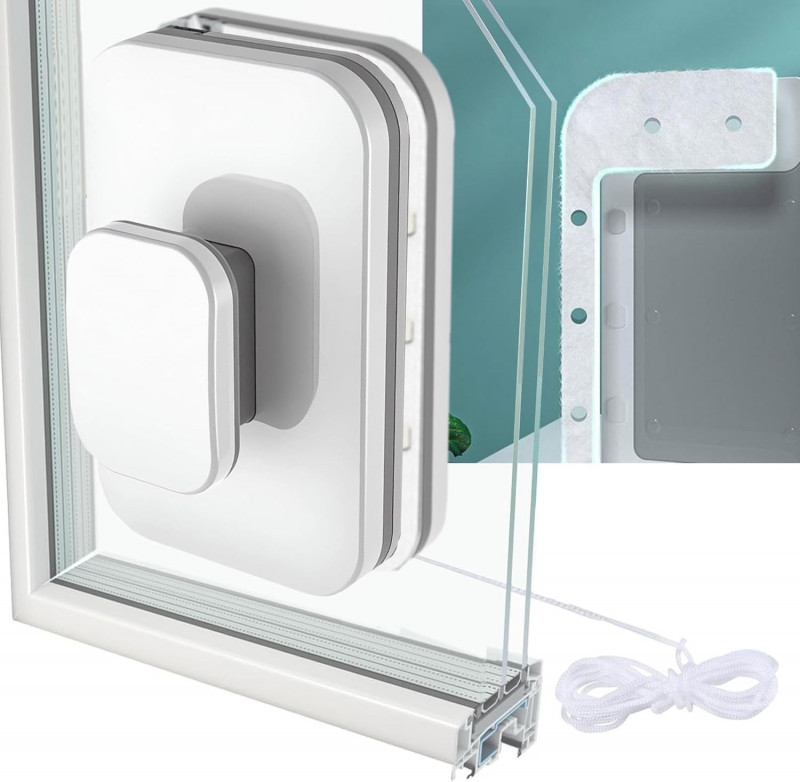 Galingi magnetai leidžia efektyviai nuvalyti langą – valyti galima greitai ir tiksliai. Komplekte yra dvi mikropluošto servetėlės, skirtos švelniam ir švariam langų paviršiaus nuvalymui.