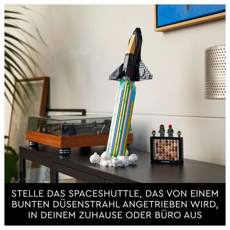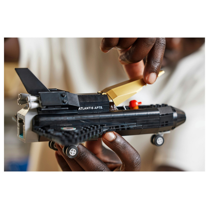 Features – The model space shuttle has an opening cockpit and comes with attachable landing gear, and the set also includes 2 space helmets with opening gold-coloured visors